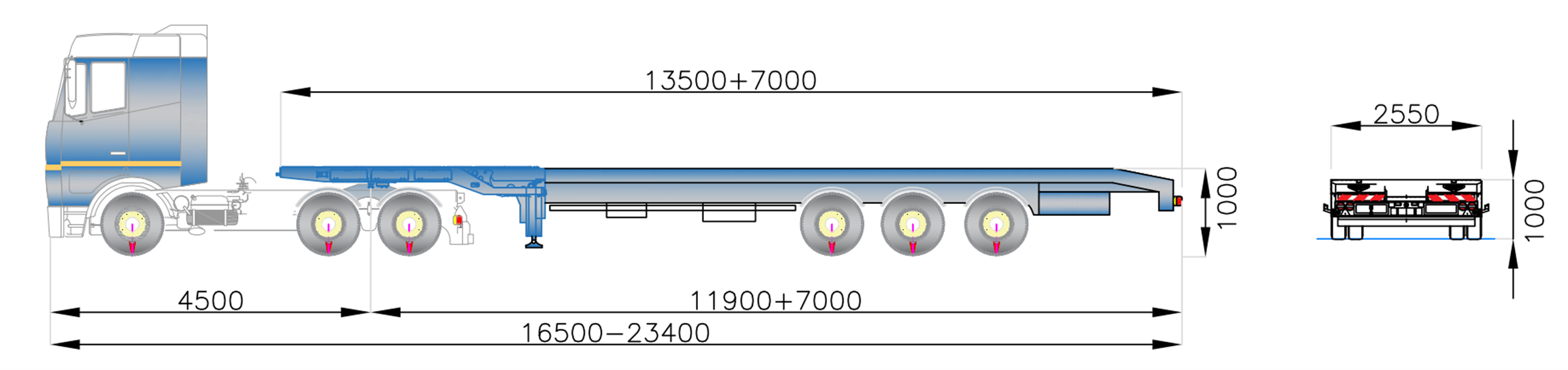 3+4 axles Semitrailer extendable with alveoli